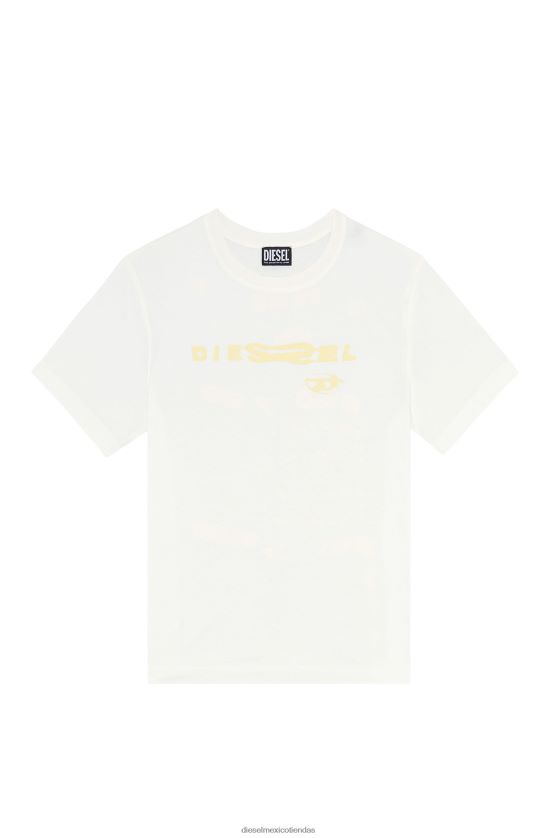Camiseta holgada para mujer confeccionada con jersey de algodón. las letras diesel distorsionadas en la parte delantera y trasera están impresas con un acabado hinchado. teñido en prenda para un look desteñido.