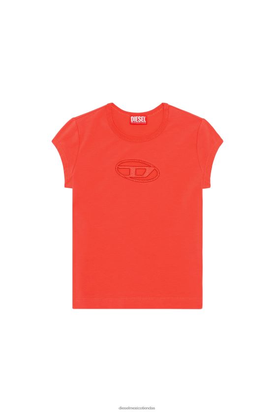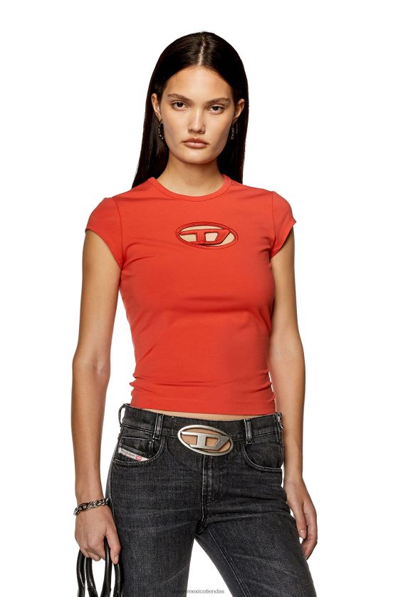esta camiseta para mujer presenta un logotipo peekaboo 'oval d' en el pecho, hecho con una técnica de corte por láser y bordado. Está confeccionado con algodón orgánico mezclado con elástico para un ajuste ceñido cómodo. la variante roja de este artículo es una edición limitada.