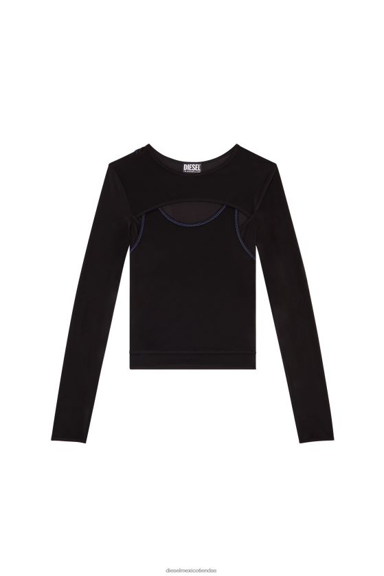 esta camiseta de manga larga para mujer parece estar superpuesta con una camiseta sin mangas. Corte delgado con paneles tonales de jersey elástico ligero, tiene un escote recortado y costuras en contraste. un logotipo 'oval d' bordado acentúa la parte posterior.
