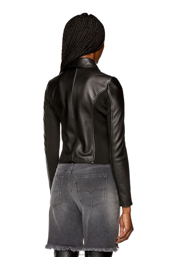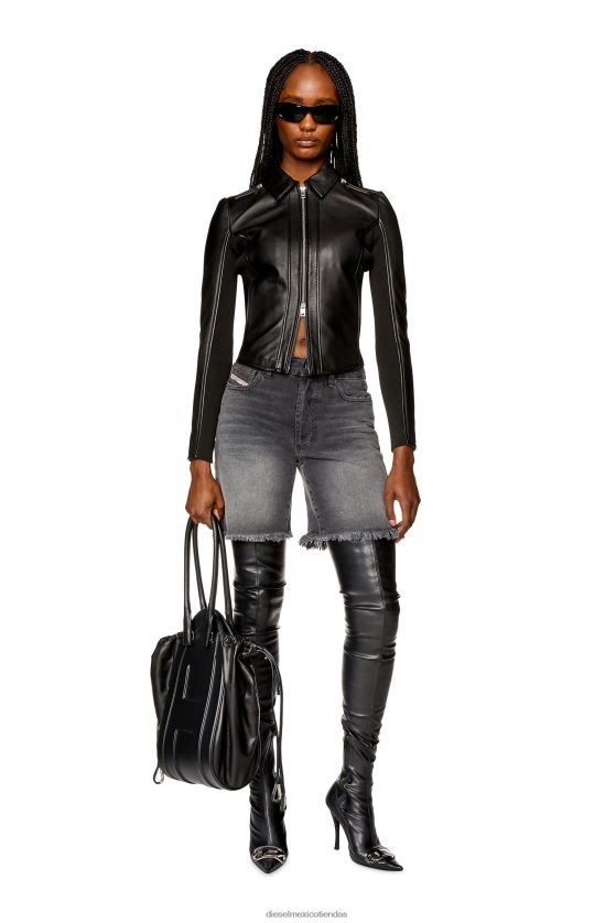 Confeccionada en cuero negro flexible con un acabado elegante, esta chaqueta motera para mujer está diseñada con una silueta estilizada y ligeramente recortada, sin forro para mayor ligereza. los detalles de cremallera atraen la atención hacia los hombros, mientras que los paneles acanalados elásticos aseguran un ajuste flexible y un guiño a una estética moto deportiva. detallado con un logotipo de d ovalado en relieve en la manga izquierda.