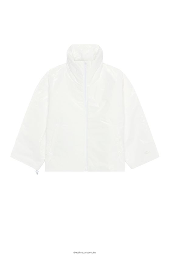 Esta chaqueta acolchada para mujer, de gran tamaño, tiene un cuello alto y cordones para ajustar los puños y el dobladillo. está confeccionado con tejido técnico tyvek laminado con un acabado texturizado brillante y bordado en el pecho con la marca 'oval d'.