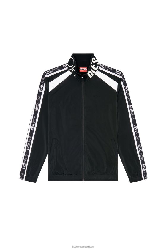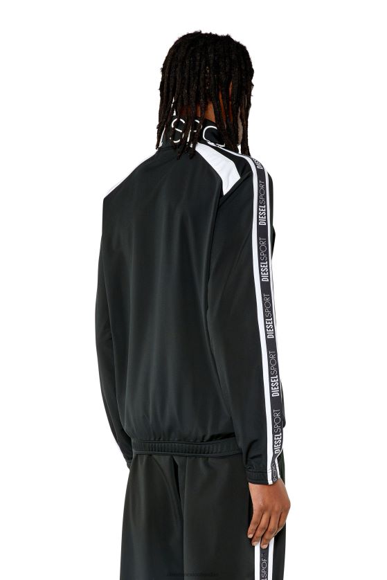 Chaqueta deportiva negra para hombre de la edición diesel sport, confeccionada con punto técnico absorbente de sudor. diseñado con cinta con el logotipo en las mangas y letras de goma en el cuello alzado. un logotipo de goma 'd' adorna el pecho.