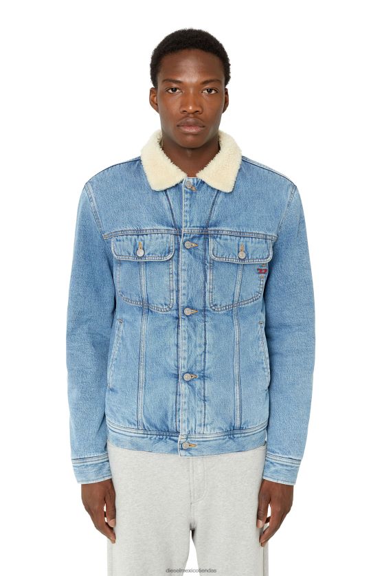 Chaqueta vaquera de hombre con silueta de camionero de corte regular. un estilo de invierno, está aislado con suave peluche crudo que se extiende hasta el cuello.