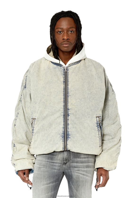 Con una silueta bomber extragrande, esta chaqueta para hombre está confeccionada con una nueva generación de mezclilla con circularidad en su corazón. acolchado para mayor calidez, se abrocha con una cremallera y tiene cordones ajustables en los puños.