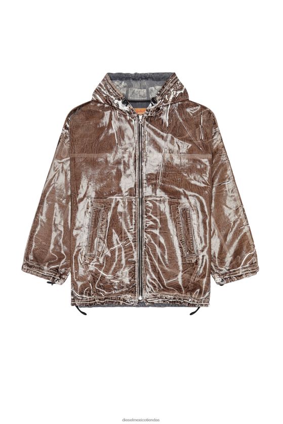 una pieza exclusiva modelada en la pasarela primavera verano 2023, esta chaqueta de mezclilla con capucha para hombre tiene una estética revestida única y cordones alternados que suavizan el ajuste relajado. la parte delantera se abrocha con una cremallera bidireccional.