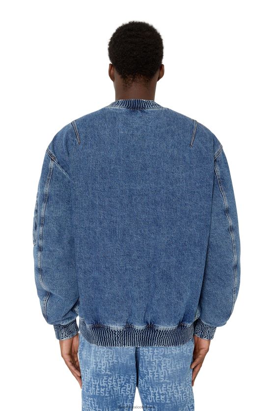un diseño listo para el invierno, esta chaqueta bomber de mezclilla para hombre tiene un interior acolchado y ribetes elásticos. el tejido blue fix está confeccionado con una mezcla de fibras de algodón y cáñamo y tratado con una técnica alternativa de lavado a la piedra para lograr un aspecto desgastado.