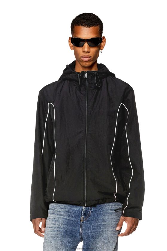 Cortavientos de hombre confeccionado en tejido técnico arrugado en una mezcla de nailon y algodón. detallada con ribetes en contraste, esta chaqueta liviana tiene un ajuste regular, puños elásticos y cordones para ajustar la capucha y el dobladillo. el interior está forrado con malla para mayor transpirabilidad.