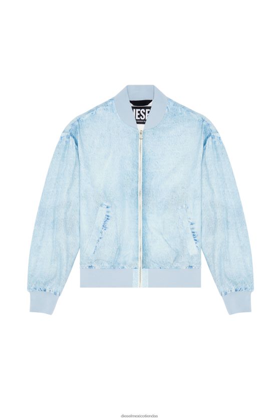 Confeccionada con una tela suave y fluida, esta chaqueta bomber para hombre presenta un estampado trompe l'oeil de ingeniería que reproduce el lavado azul claro de la auténtica mezclilla diesel. tiene un ajuste regular con hombros ligeramente caídos y un forro para mayor comodidad.