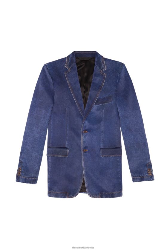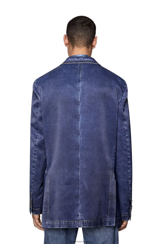 Colección desfile primavera-verano 2022. este blazer fluido ha sido especialmente impreso con láser con una imagen de una pieza de mezclilla auténtica para crear un efecto trampantojo. confeccionado para un corte regular de cady de viscosa brillante, presenta solapas con muescas, botones en la pierna y una doble abertura.