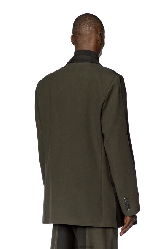 blazer de hombre diseñado con un ajuste regular. esta chaqueta inspirada en la sastrería está confeccionada con una combinación de lana fresca negra y forro polar a tono con un sutil tratamiento desteñido. los bordes sin rematar completan el look.