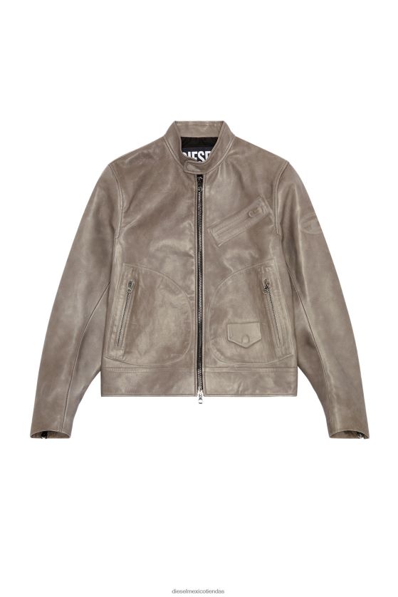 Haciendo alarde de una silueta deportiva de corredor, esta chaqueta de motorista para hombre está construida con una base de lona y una capa de cuero reconstituido. las costuras y los bolsillos en la capa inferior crean una apariencia en relieve, acentuada por un tratamiento pulido y rasguños aplicados a mano.