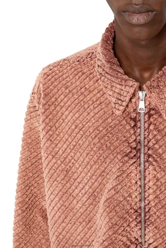 esta chamarra de pana para hombre es parte de la colección de desfiles otoño-invierno '22. texturizado con gruesos surcos diagonales, tiene un aspecto desgastado irregular con manchas de color a lo largo del cierre de cremallera.