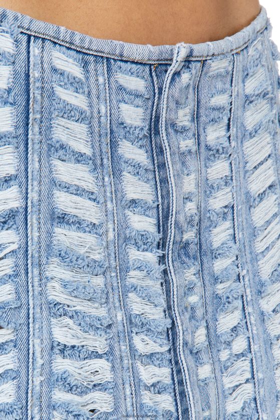 esta falda larga canaliza el espíritu intrépido, atrevido y disruptivo de diesel. visto en el desfile de primavera verano 2023, presenta roturas con láser en toda la prenda para un diseño visualmente impactante. el forro transparente está acabado con una icónica costura roja.