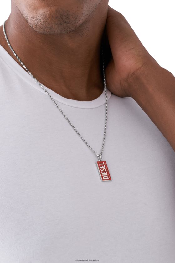 El collar con placa de identificación con el logotipo de diesel presenta acero inoxidable y un cierre de mosquetón.