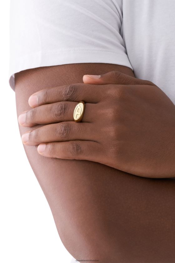El anillo con el logotipo D de Diesel cuenta con acero inoxidable.