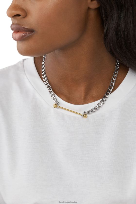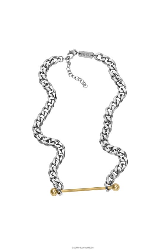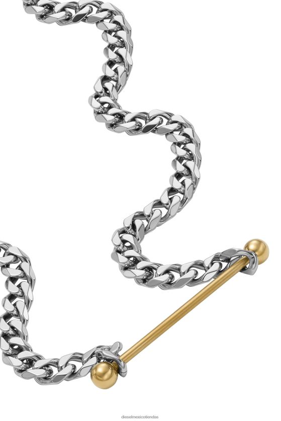 El collar de cadena de diesel presenta acero inoxidable de dos tonos y un cierre de mosquetón.