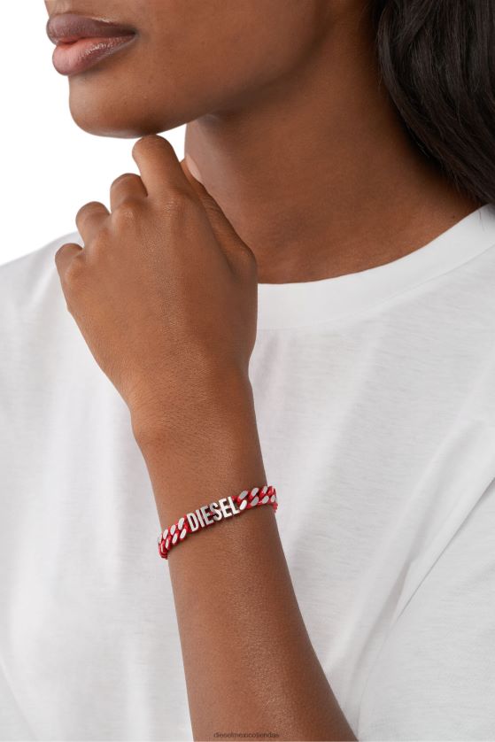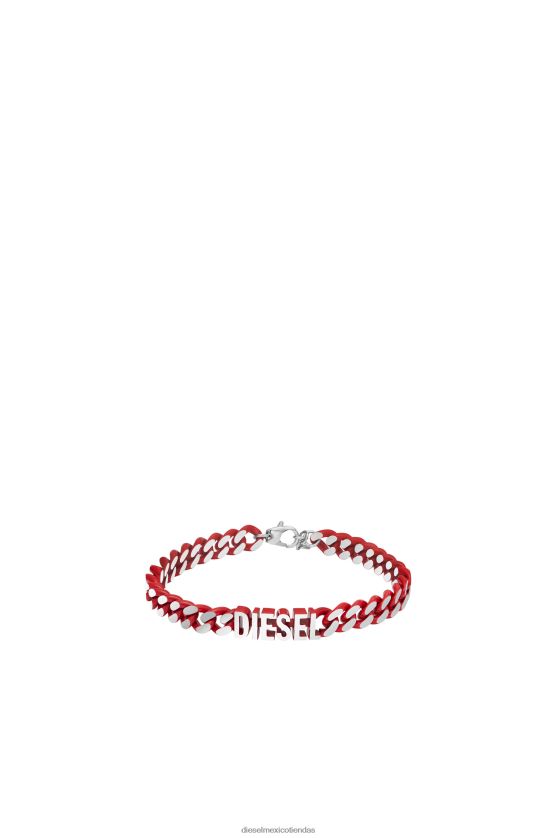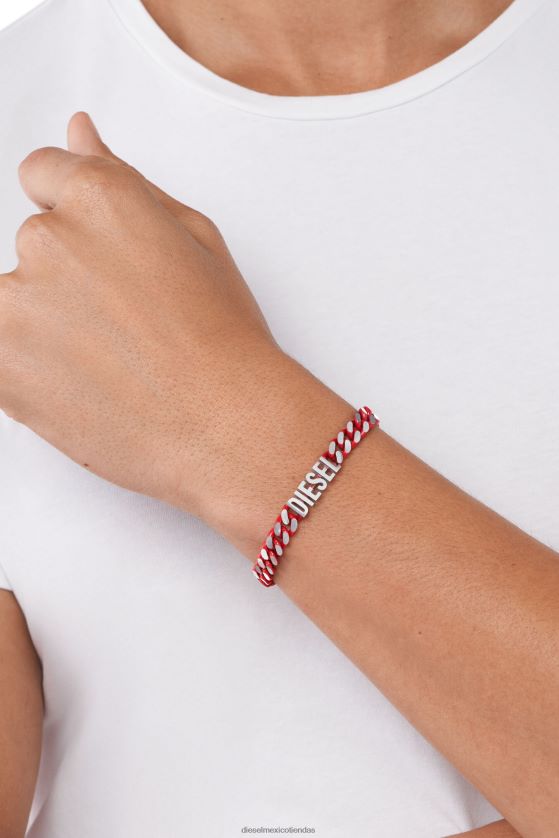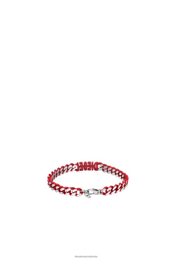 El brazalete de cadena de diesel presenta acero inoxidable rojo y un cierre plegable.