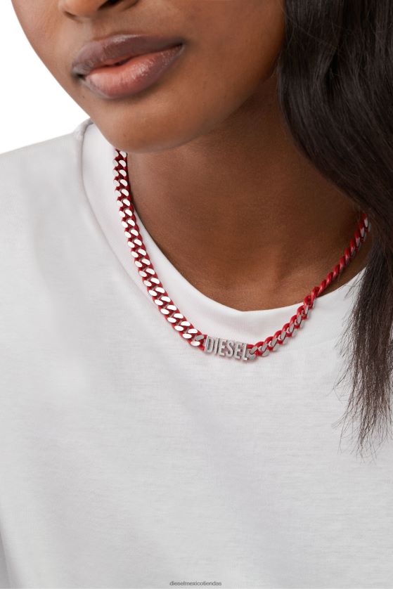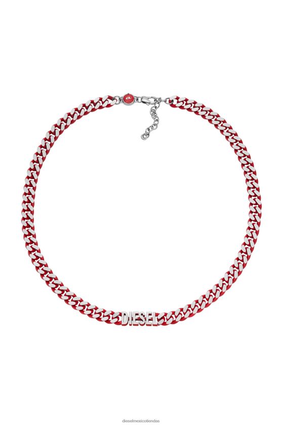El collar de gargantilla de diesel presenta acero inoxidable rojo y un cierre de mosquetón.
