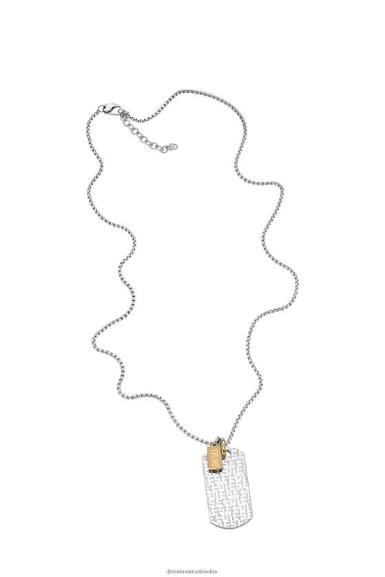 El collar con placa de identificación de diesel presenta acero inoxidable de dos tonos y un cierre de mosquetón.