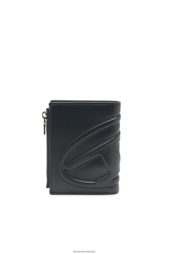 Cartera compacta en napa negra. grabado con un gran logotipo "oval d" que sigue perfectamente el diseño plegado, este accesorio unisex ofrece un impresionante espacio para guardar tarjetas, una funda para billetes y un bolsillo con cremallera para monedas.