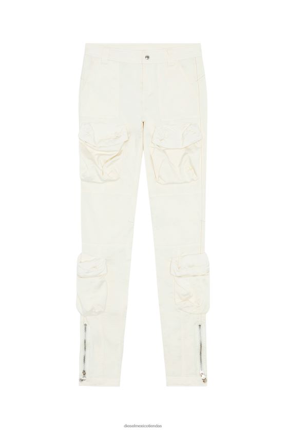 Pantalón cargo de raso para mujer confeccionado en viscosa-algodón stretch. teñidos en prenda y lavados a la piedra para un look vintage, su perfil ajustado presenta cremalleras y botones a presión en los puños. bordado con un logo d ovalado a tono en uno de los bolsillos.