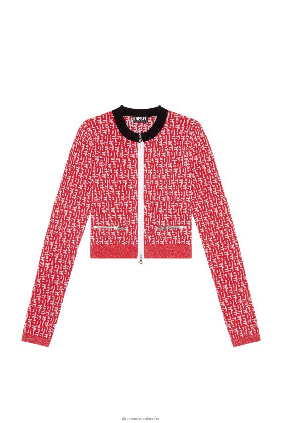 cárdigan de punto del desfile otoño invierno 2022. Está confeccionado con una mezcla de viscosa elástica y presenta ribetes de color sólido y un motivo de logotipo diesel bicolor. este artículo es una edición limitada.