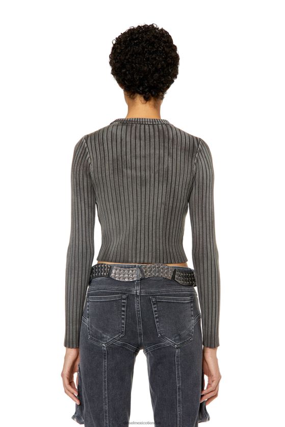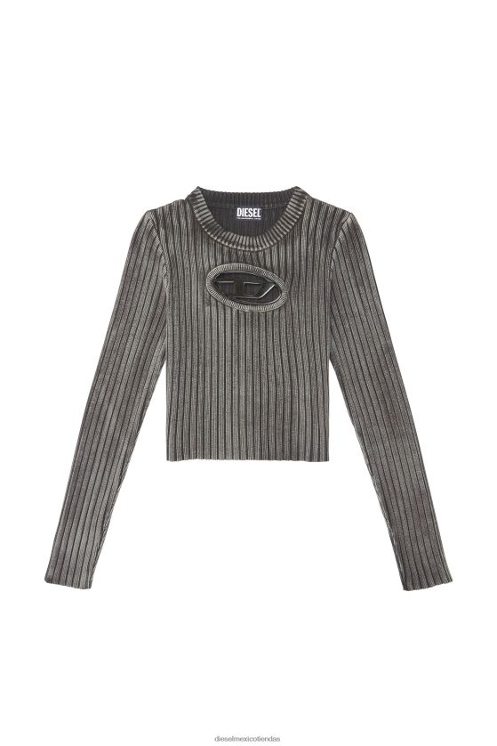este top de canalé de algodón negro forma parte de la colección de pasarela primavera verano 2023, especialmente tratado para conseguir un look vintage. recortado y ajustado, este estilo de mujer está adornado con una placa de metal 'd' en el pecho para un efecto de peek-a-boo.