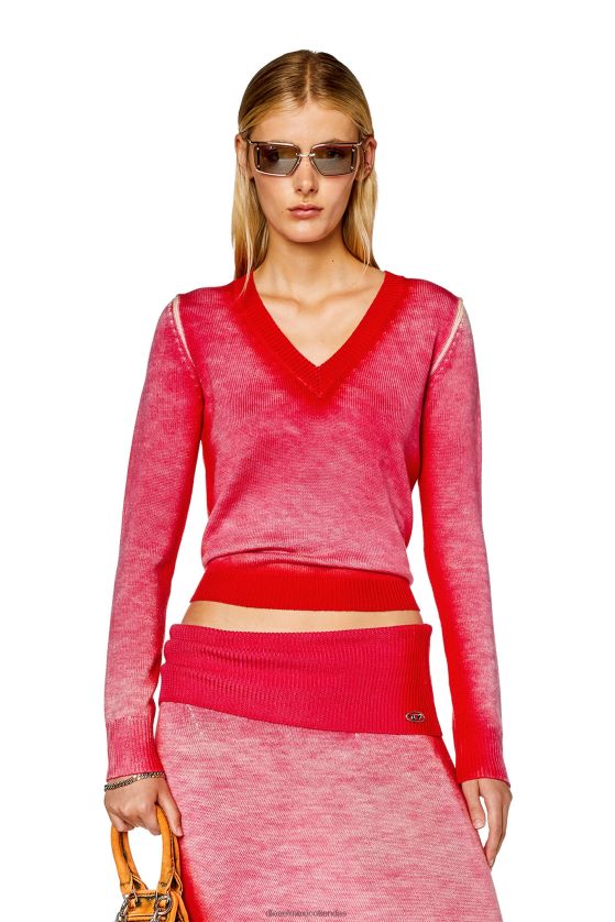 este jersey de lana de corte estándar para mujer está diseñado con un estampado en el interior que se ve solo parcialmente en el exterior para un look desteñido. Estampado con spray en los bordes, luce un escote en V y una placa de metal ovalada en forma de D en la parte posterior.