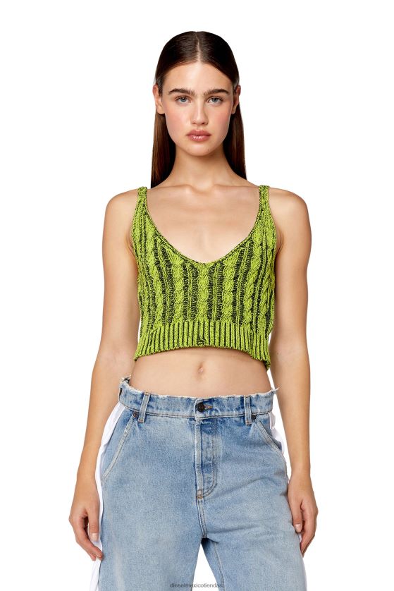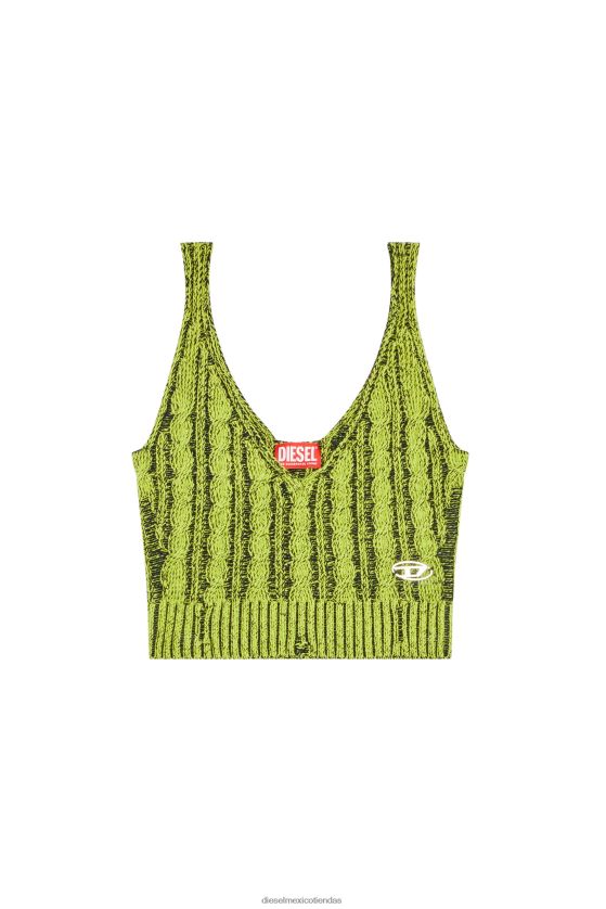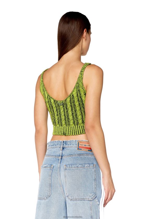 Con una silueta recortada, esta camiseta sin mangas para mujer está confeccionada con hilos de chenilla y algodón de punto trenzado. el punto chapado tiene una sensación táctil afelpada, enriquecida con un efecto de dos tonos inspirado en el denim sobreteñido. sutiles detalles destruidos en el dobladillo acanalado completan el look.