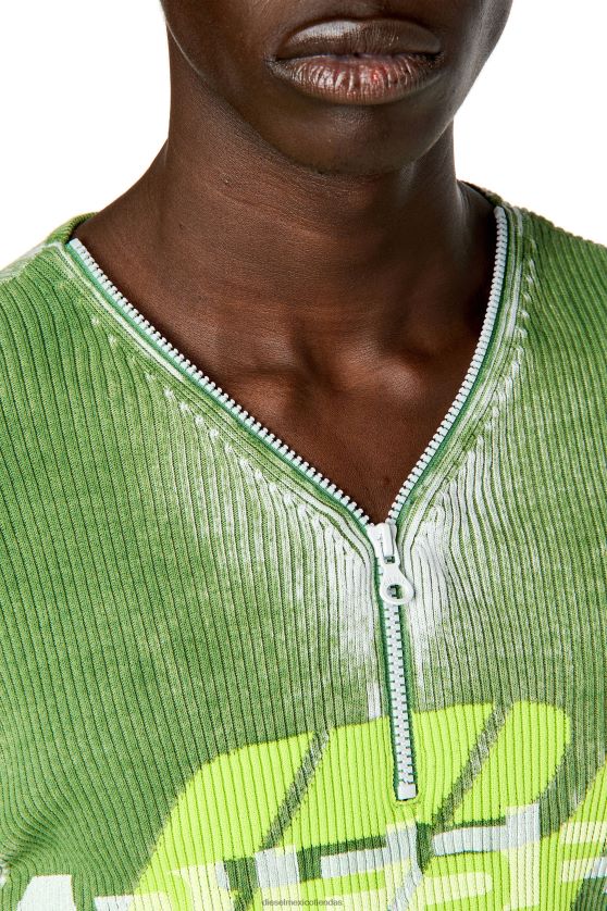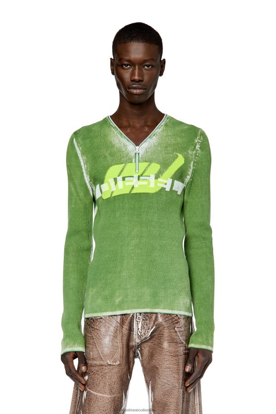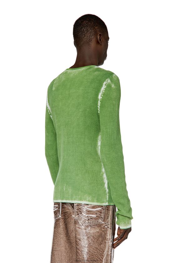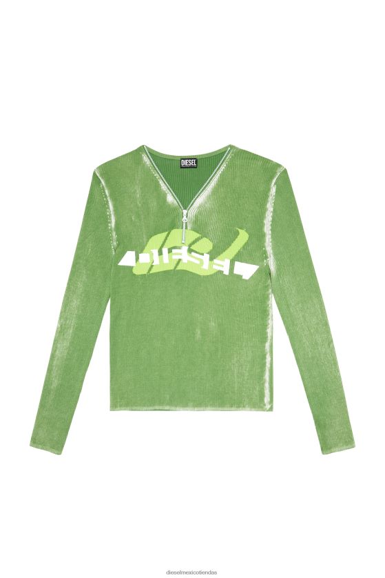 colección de pasarela primavera verano 2023. esta camiseta de manga larga para hombre está tejida con una mezcla de algodón flexible para ajustarse a la silueta. Está decorado con un gráfico del logotipo en la parte delantera, tiene un escote en V ajustable con cremallera y un desteñido que resalta las costuras.