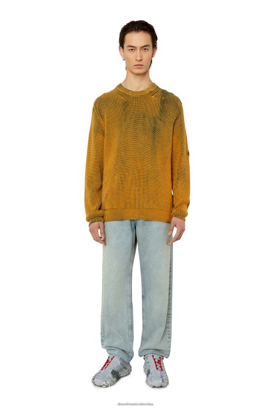 este suéter para hombre ha sido tratado en el interior para crear rayas desteñidas desde el exterior, un efecto reforzado por la textura acanalada del tejido de mezcla de algodón. está diseñado para un ajuste regular y tiene un parche con el logo en la manga.