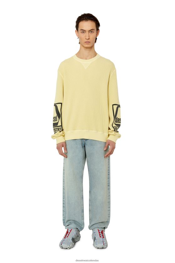 Sudadera regular fit de algodón con punto gofrado suave. teñido en prenda para una apariencia desgastada, este estilo de hombre está marcado con estampados de goma de la industria diesel en las mangas y la espalda, tomados de los archivos.