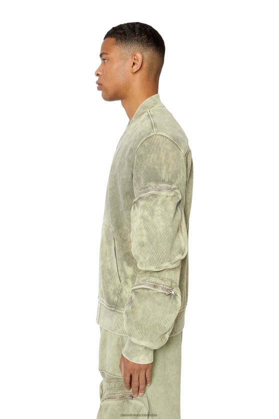 Chaqueta con cremallera para hombre confeccionada en suave algodón acanalado con un acabado jaspeado vintage. Con forma para un ajuste regular, tiene un escote bomber y prácticos bolsillos tridimensionales en las mangas. parche de lona con logo en la espalda.