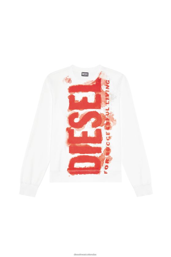 Sudadera de cuello redondo para hombre con ajuste regular. Este modelo teñido con pigmentos, confeccionado con tejido jersey de algodón en bucle, tiene un logotipo de estilo acuarela salpicado por todo el frente, como resultado de la impresión sobre una prenda húmeda.