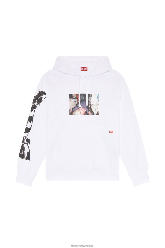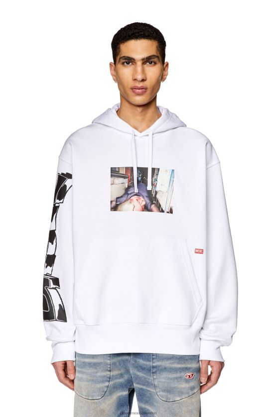 Con una silueta holgada, esta sudadera con capucha para hombre está confeccionada con un tejido jersey de algodón grueso con un tacto crudo. la parte delantera y la trasera cuentan con estampados fotográficos, mientras que la manga está adornada con un llamativo logotipo gráfico.