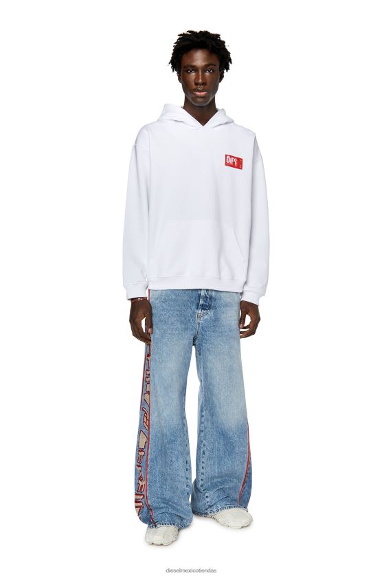 sudadera con capucha para hombre de la colección de pasarela primavera verano 2023. Confeccionado en algodón, cuenta con un parche con el logotipo de Diesel para una vida exitosa en el pecho, actualizado con un tratamiento deshilachado para una apariencia destruida.