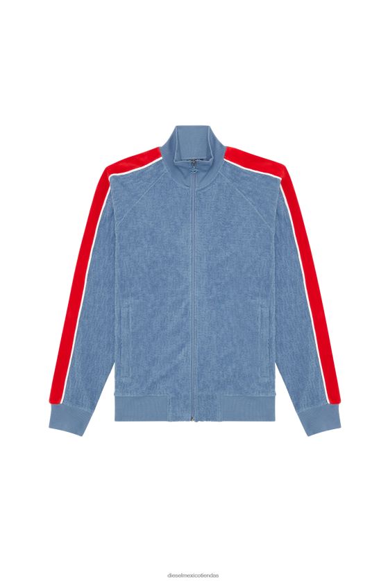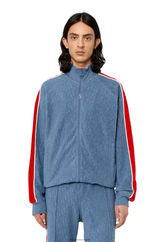 esta camiseta de chándal para hombre está confeccionada en chenilla con logotipo en jacquard para crear un efecto en relieve. un estilo ceñido, tiene bandas de manga contrastantes delineadas con ribetes y un tirador de cremallera con logo. el cuello, los puños y el dobladillo están acanalados para mayor comodidad.