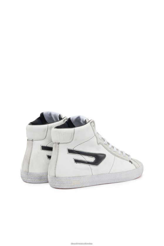 esta zapatilla de cuero de caña alta se actualiza con la marca d en relieve y detalles de gamuza tonal. tanto la parte superior como la suela de goma vulcanizada cuentan con un tratamiento efecto sucio para un aspecto desgastado. rematado con un detalle de triple puntada en el ojal.